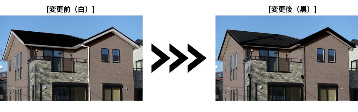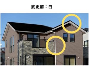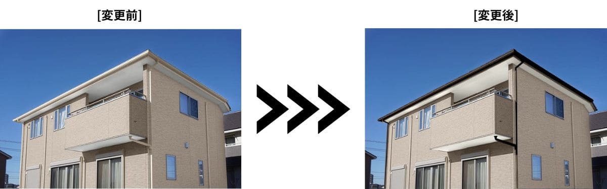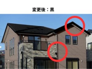 破風・樋:ブラック に変更し、サッシや外壁とトーンを合わせる