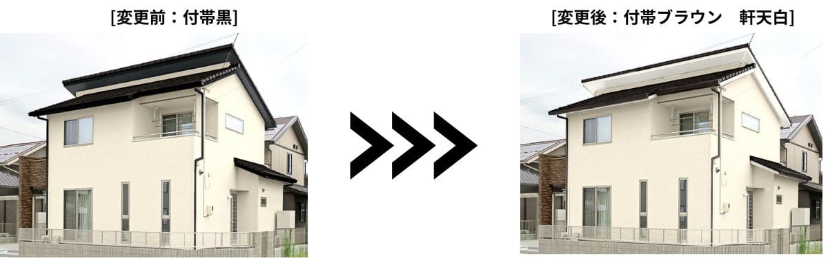 付帯部を濃いブラウンに統一 また軒天をホワイトで明るく!