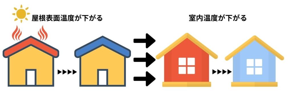 簡単に言うと、屋根の上に“熱をはね返す薄いカバー”をかけるイメージで、屋根の温度上昇をやわらげてくれます。