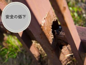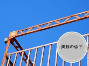 鉄部は雨や湿気にさらされることで少しずつ劣化し、サビが発生します。サビを放置すると見た目が悪くなるだけでなく、強度が落ちて穴があいたり、最悪の場合は安全性に影響を及ぼすこともあります。