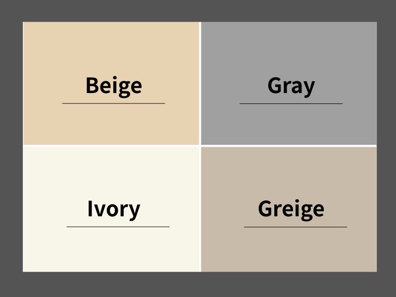 この“グレージュらしさ”を押さえておくと、ベージュやグレー、アイボリーとの違いもイメージしやすくなります。